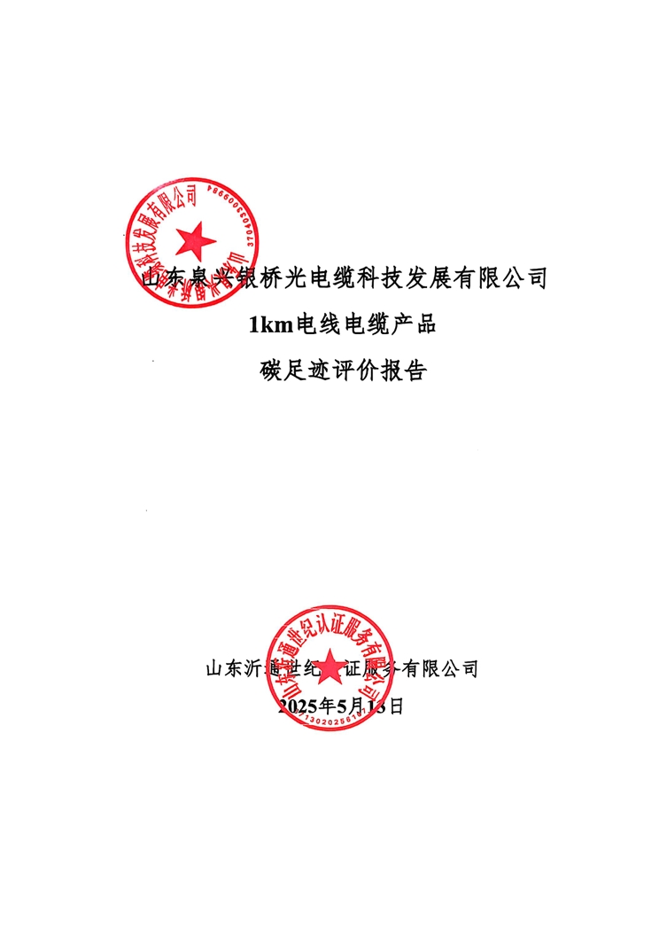 山東全興銀橋光電纜科技發(fā)展有限公司1km電線電纜產(chǎn)品碳足跡評價報告